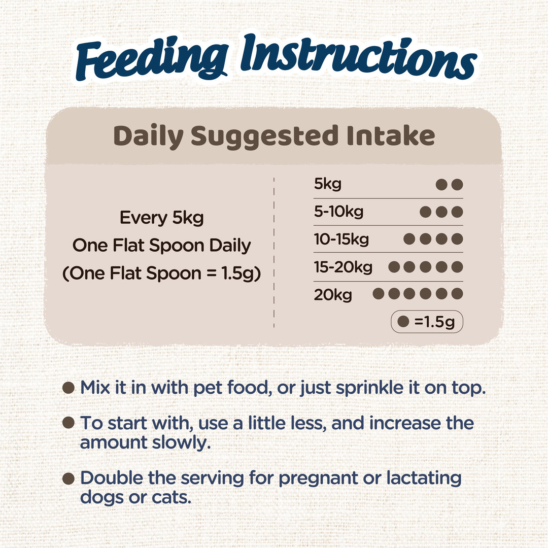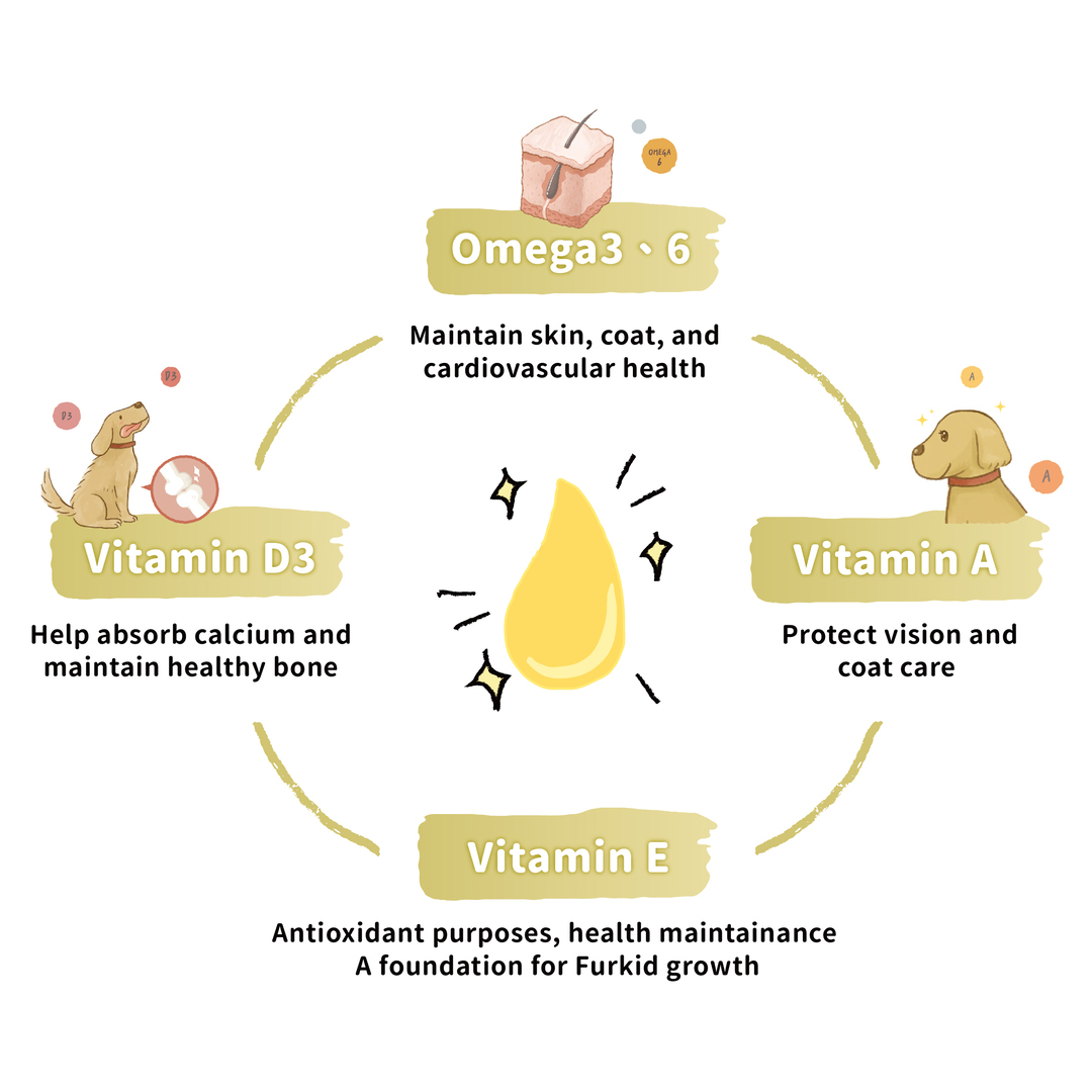 Omega 3 & 6 fatty acids help maintain healthy skin and coat conditions.