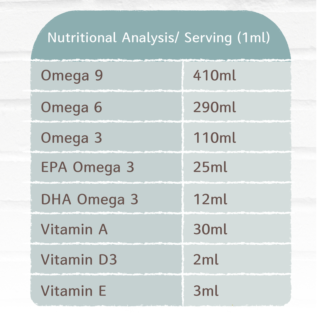 ECOSKIN contains the following EFAS and fat-soluble vitamins: