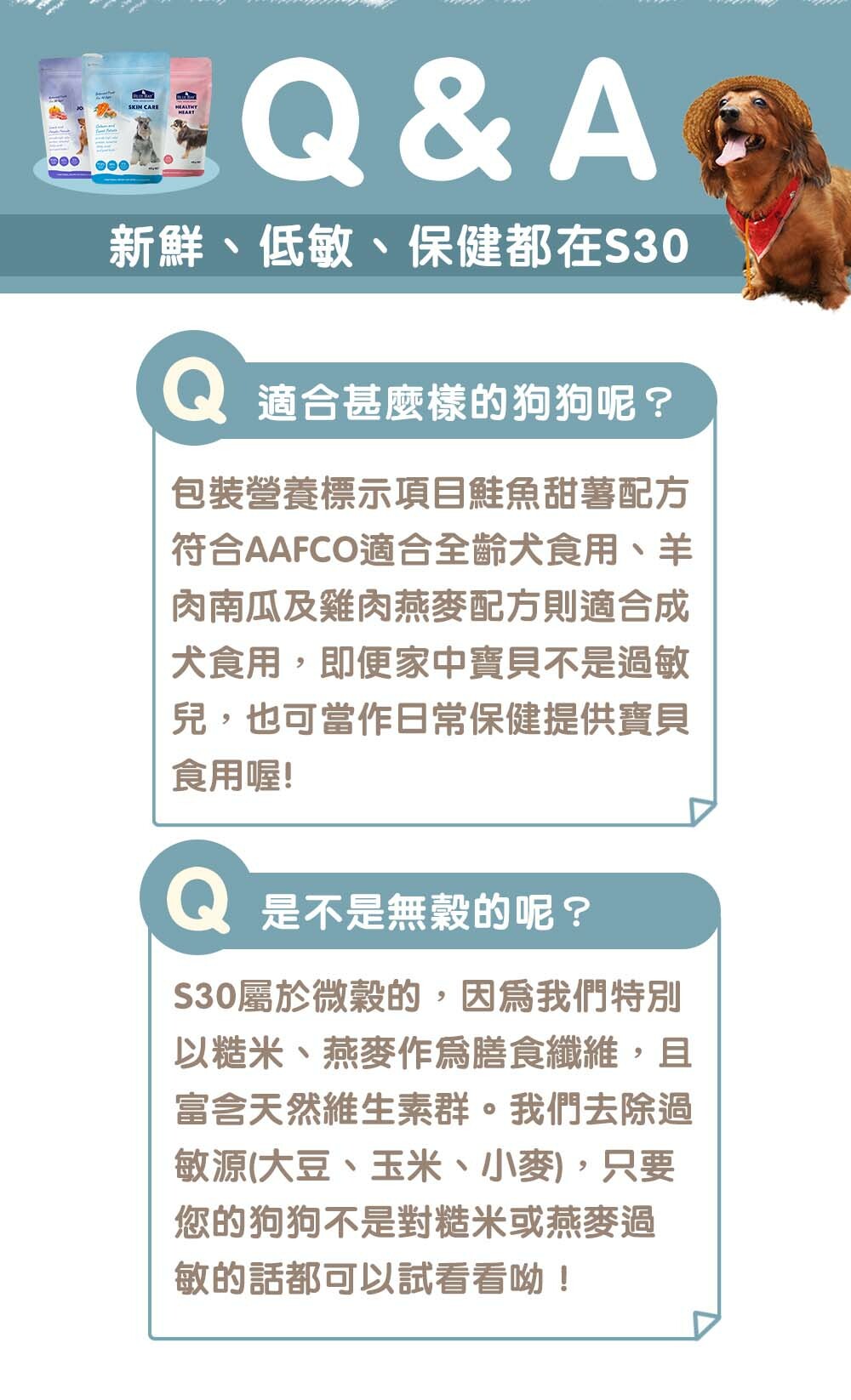 ☑ S30低敏狗飼料 1.5kg (任選1)