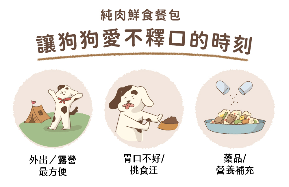 優惠 𝟕𝟕 折 | 𝟏𝟐入 \\ 純肉鮮食餐包×開封即食 // 85% 鮮燉肉塊 × 4種不同保健機能看得見的肉肉 狗狗咀嚼更開心🐶☆ 西班牙番茄燉牛×亮毛護膚★ 地中海燉肉海鮮×晶亮護眼☆ 法式鶉蛋舒肥嫩雞×體重管理★ 匈牙利蕈菇櫻桃鴨×活力免疫✓ 外出/露營 ✓ 胃口不好/挑食 ✓ 騙藥/營養補充