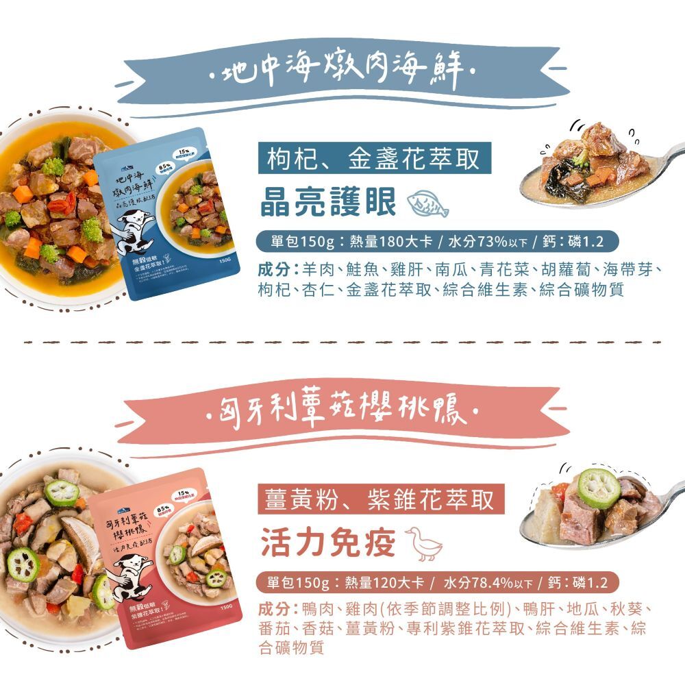 官網限定挑嘴狗專屬組 \現折$215/85% 鮮燉肉塊餐包 × 4 種機能配方開封即食,肉香滿滿,狗狗開胃又開心🐶含:西班牙番茄燉牛(亮毛護膚)/地中海燉肉海鮮(晶亮護眼)/法式鶉蛋舒肥嫩雞(體重管理)/匈牙利蕈菇櫻桃鴨(活力免疫)凍乾鮮糧3次方月亮魚嫩雞1.36kg▸ 亮眼保健機能▸ 添加頂級100%原肉主食凍乾|超高凍乾比例▸ 低敏乾糧 + 機能主食凍乾 + 原脆鮮肉凍乾▸ 86%以上 優質動物性蛋白質