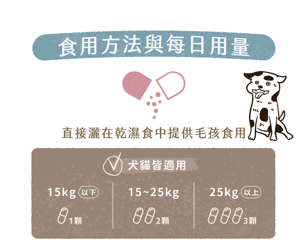 Q 毛孩35公斤以上,一天吃三顆就足夠了嗎?? |