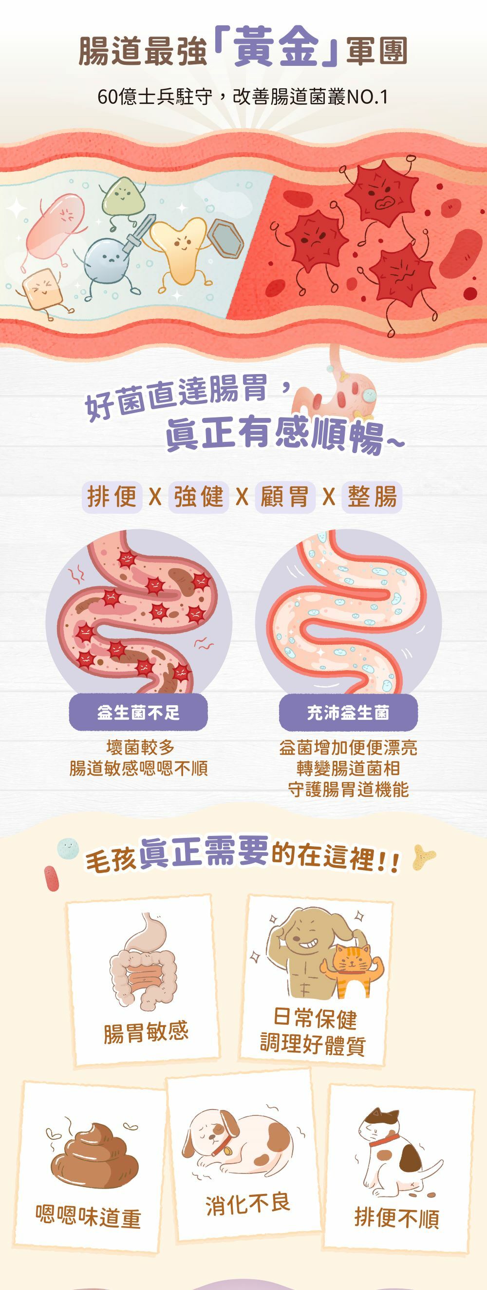 💫倍力腸胃億菌生💫 直達腸胃真實有感◥ 專利四層的包埋技術➩好菌安全抵達腸道◥ 60億益菌➩跟壞菌說掰掰👋◥ 多效型雙益菌BC30乳酸菌與AB乳酸菌 BC30乳酸菌➩增加菌叢品質 、幫助消化吸收AB乳酸菌 ➩排便順暢、增強消化道機能適用貓犬:☑便便不順 ☑便臭 ☑幫助消化 ☑日常保養