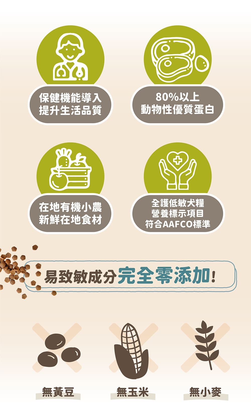 低敏護膚配方:智利鮭魚及深海魚肉、澳洲脫水雞肉。